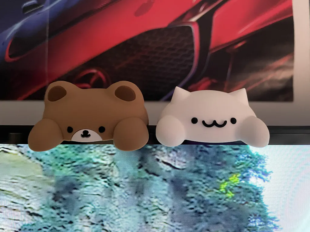 Our viral bongo cat screen buddy! Put him on your monitor so he can keep you company while you work, study and game. New and improved, this buddy is now made of a bouncy and durable cloud-like silicone.